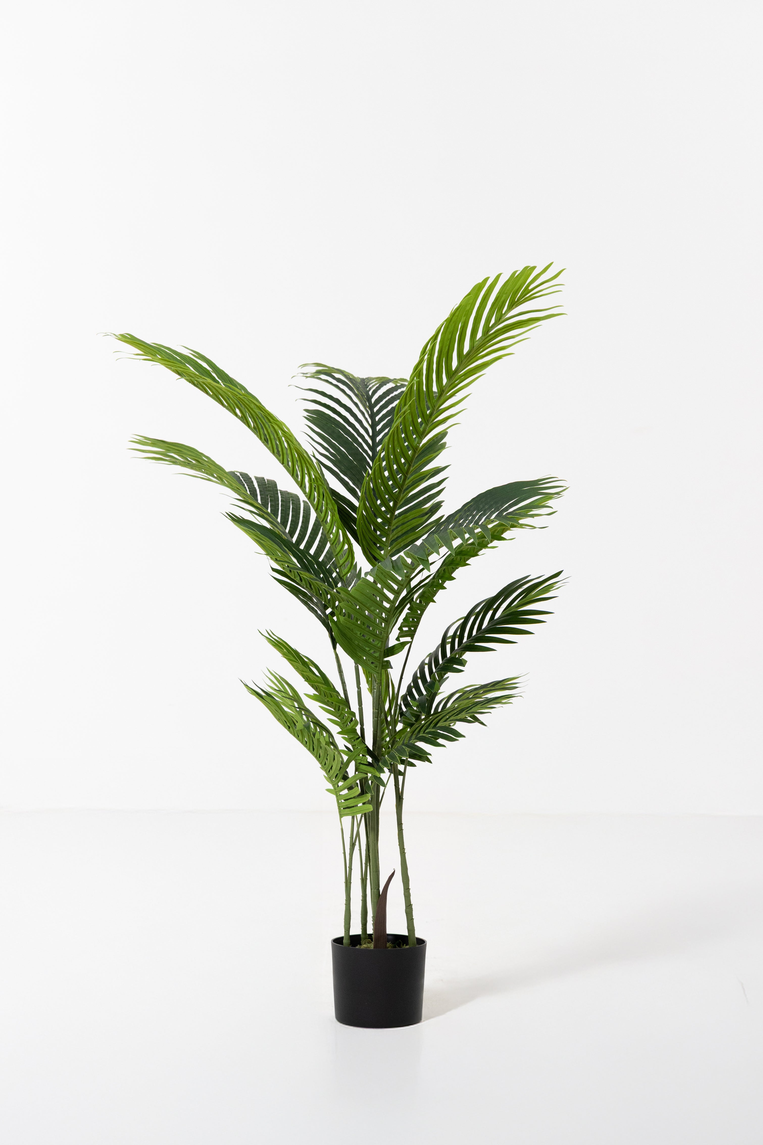 Bring a fresh, tropical feel to your home with this beautifully crafted artificial palm, designed to replicate the airy, feathered fronds of a real Areca palm. Its lush, layered leaves feature vibrant green tones and natural-looking texture, creating a full and lively appearance from every angle. Set in a modern pot for easy styling, this maintenance-free plant brightens living rooms, bedrooms, offices, or shaded outdoor areas without the need for watering or sunlight. With its generous height and graceful silhouette, it offers an effortless way to add greenery, warmth, and a relaxing atmosphere to any interior.