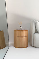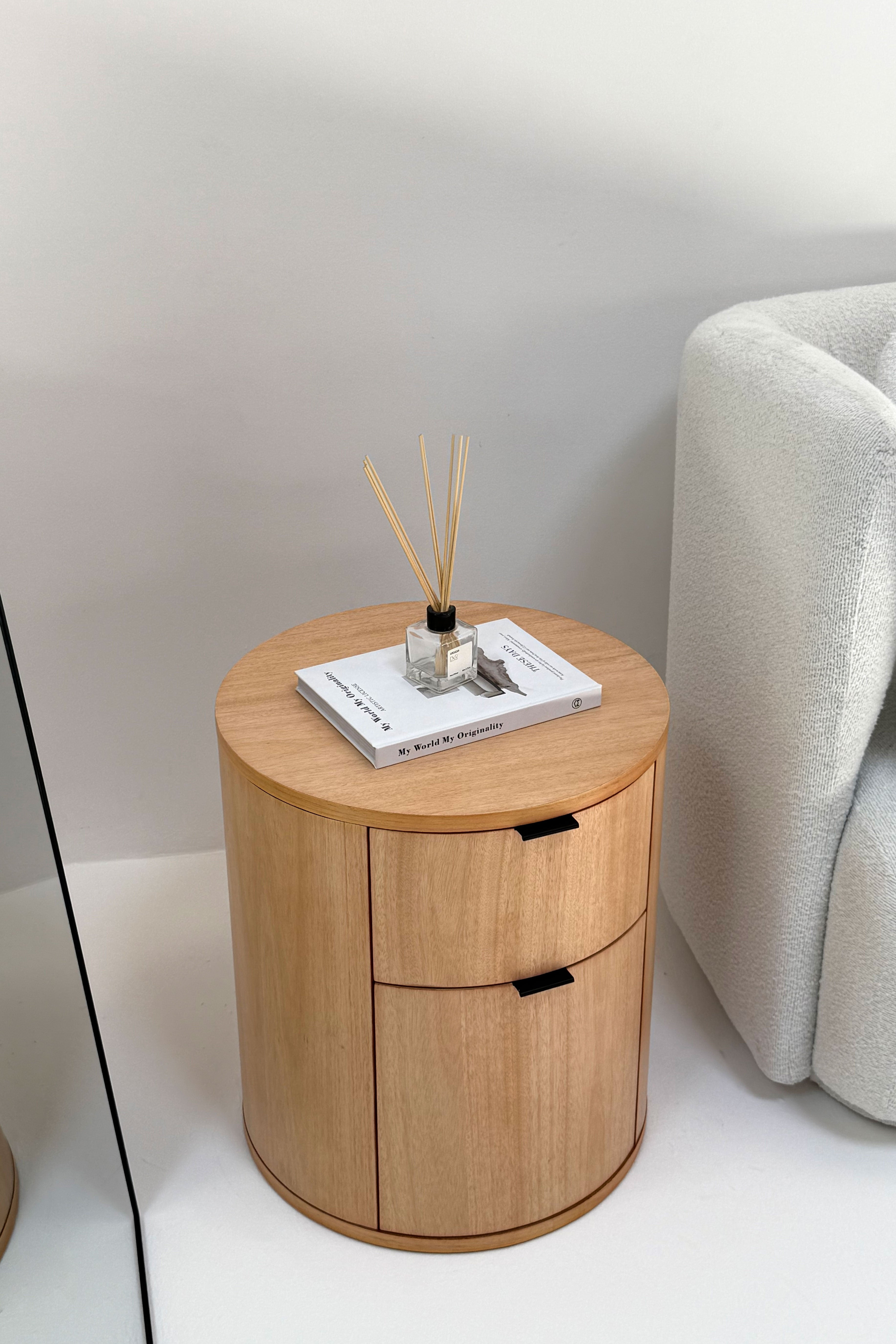 A minimalist yet luxurious nightstand crafted from solid wood. With its smooth, rounded silhouette, natural oak finish, and subtle wood grain texture, this bedside table blends seamlessly into modern, Scandinavian, and Japandi interiors. Featuring a top drawer and concealed cabinet with discreet black pulls, it's perfect for storing nighttime essentials while keeping your space clutter-free. As the protagonist of your serene bedroom retreat, you’ll love how the Sinem Table’s organic form and warm tones bring both function and timeless elegance to your daily routine.