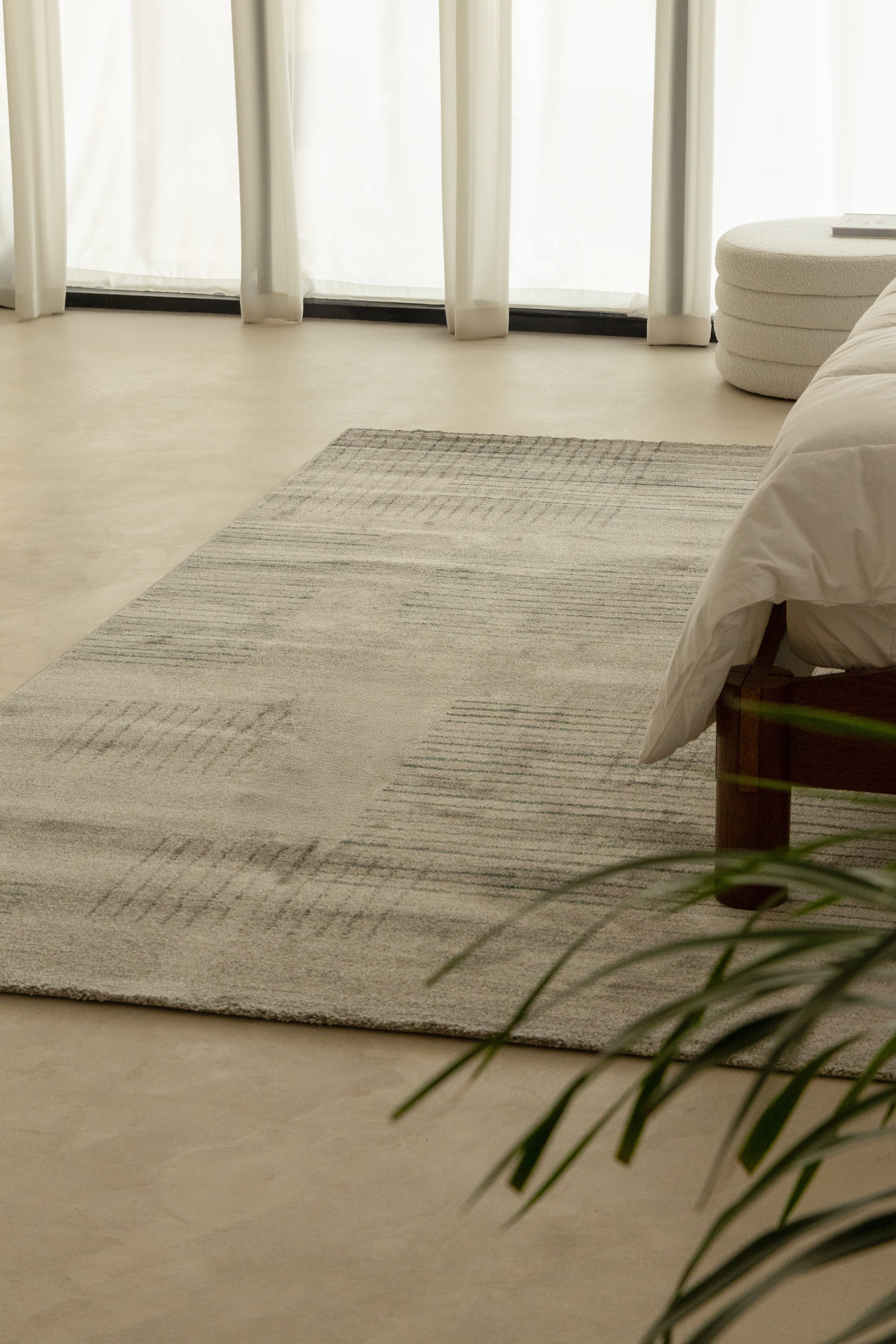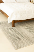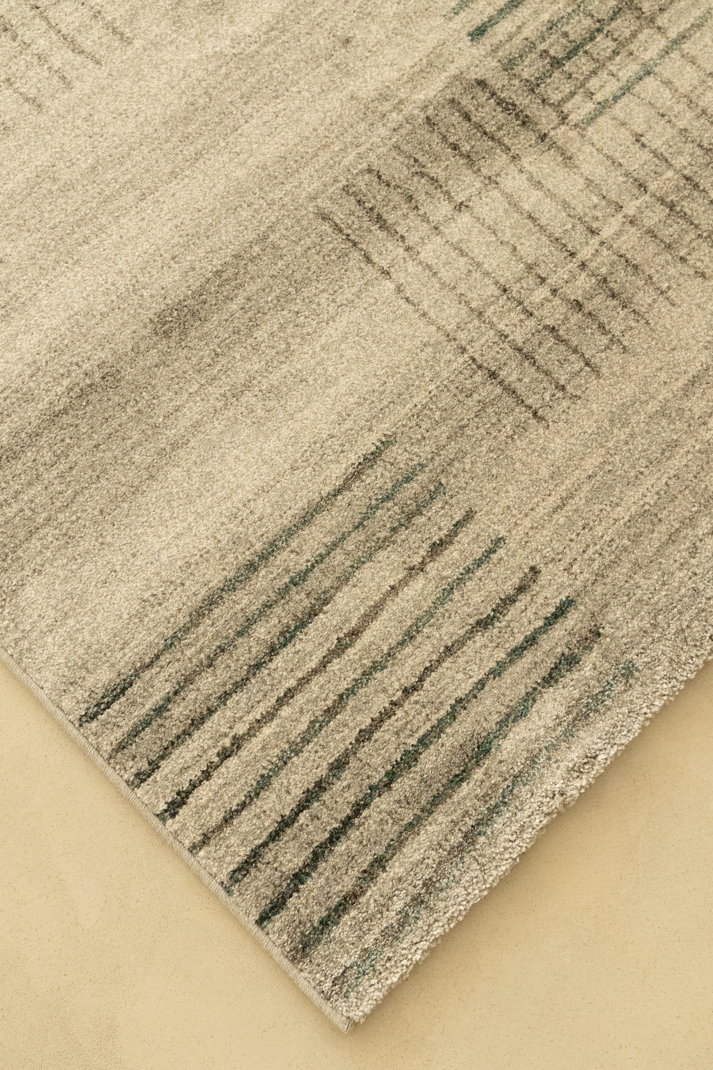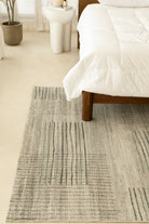The quintessential area rug designed to redefine your home decor. As you observe its captivating design, you'll see a modern tapestry of subtle grey and black horizontal lines intricately forming abstract rectangular blocks on a soft, light cream and off-white background, creating a sophisticated and versatile pattern perfect for any contemporary or transitional interior. You'll instantly appreciate the inviting, soft texture underfoot, characteristic of a high-quality floor rug.