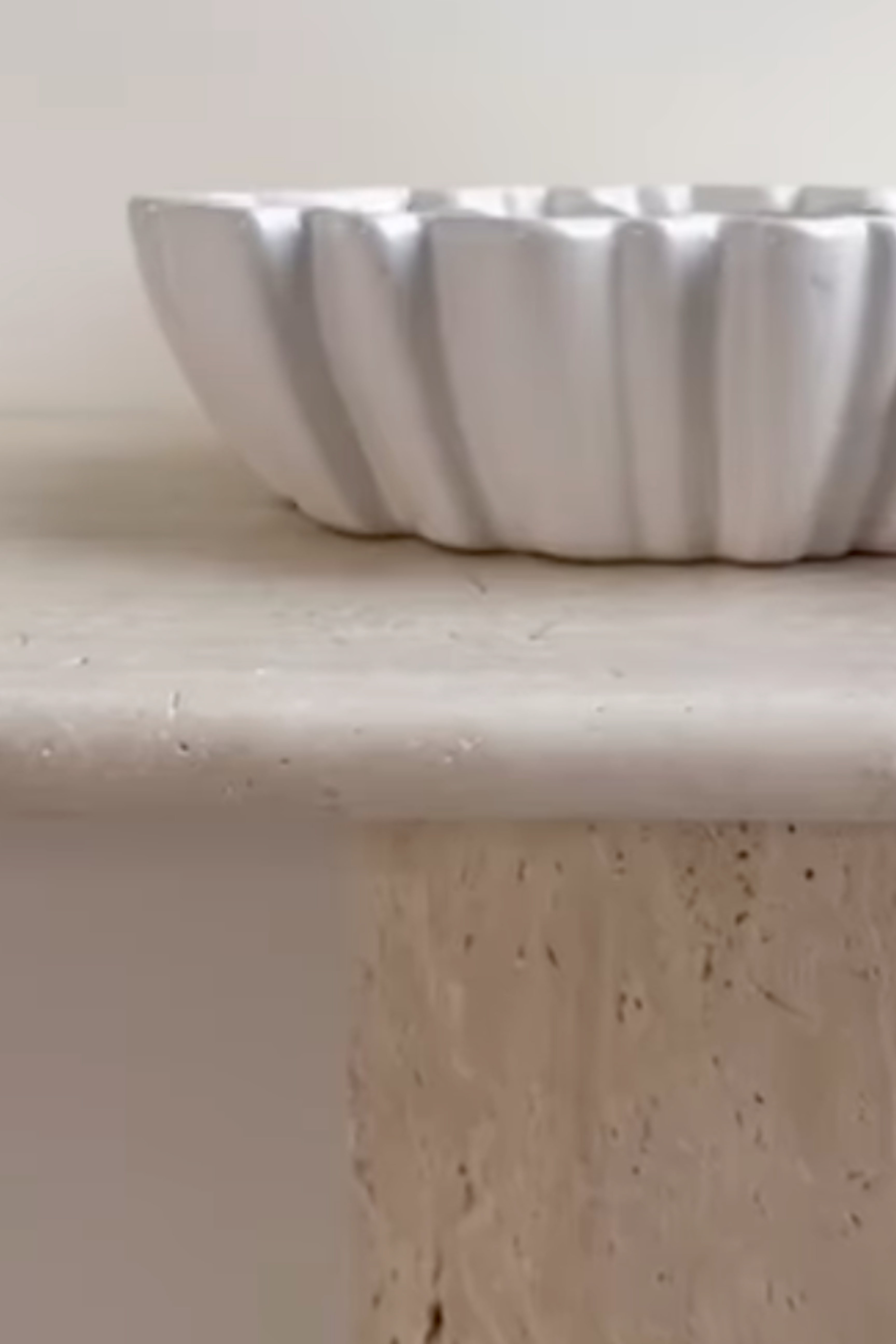 Sculpted from natural travertine, this V-legs console exudes timeless elegance with its minimalist design and earthy tones. The geometric "V" legs create a striking visual, blending form and function to elevate any entryway or living space. Its smooth, honed surface provides a perfect platform for your favorite decor, making it a must-have for those who appreciate subtle sophistication in their home.
