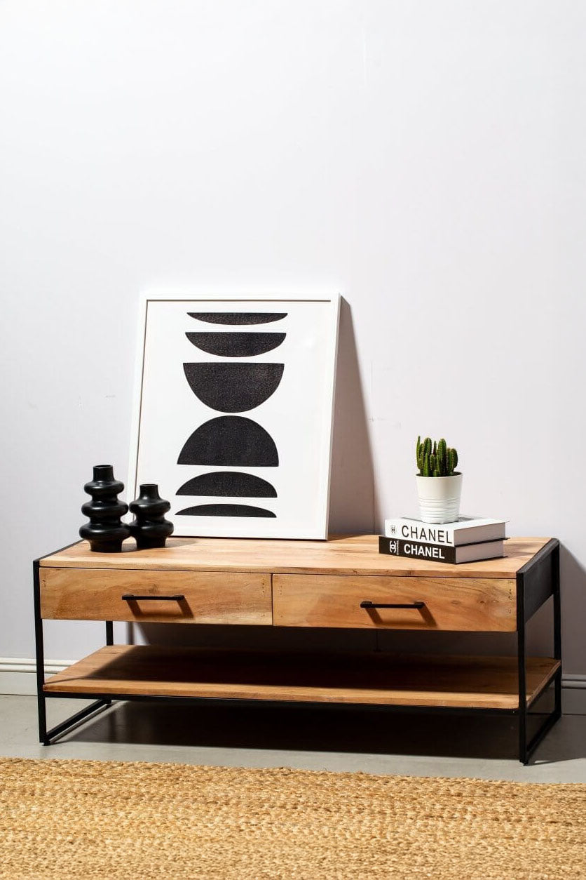 The Two Drawers with One middle Shelf TV Unit is a sleek and practical addition to any entertainment setup. With two drawers and a convenient shelf, this unit offers ample storage space for your TV devices, remote controls, and other accessories. Crafted with an industrial design, it seamlessly complements any modern living room decor, providing a stylish and organized solution for your TV and entertainment needs.