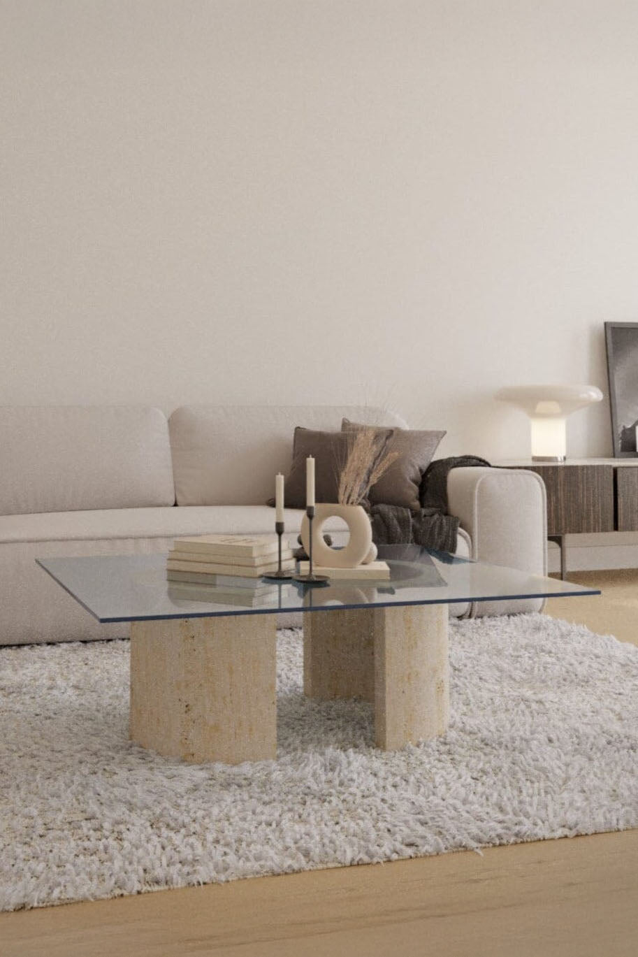 Crafted from high-quality travertine stone legs, this stunning coffee table features a unique u-shaped leg design that adds a touch of modern nordic elegance to any living space.