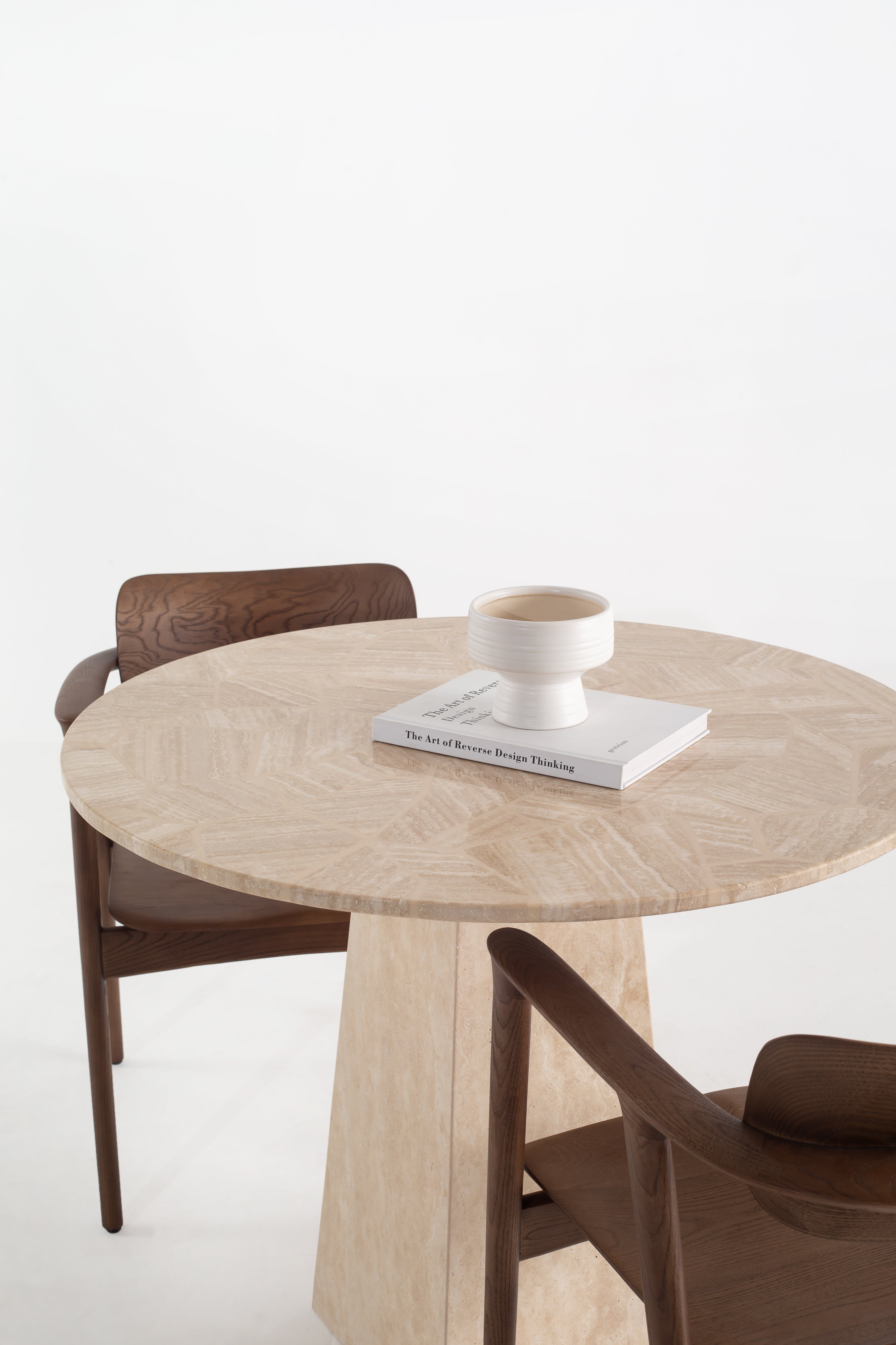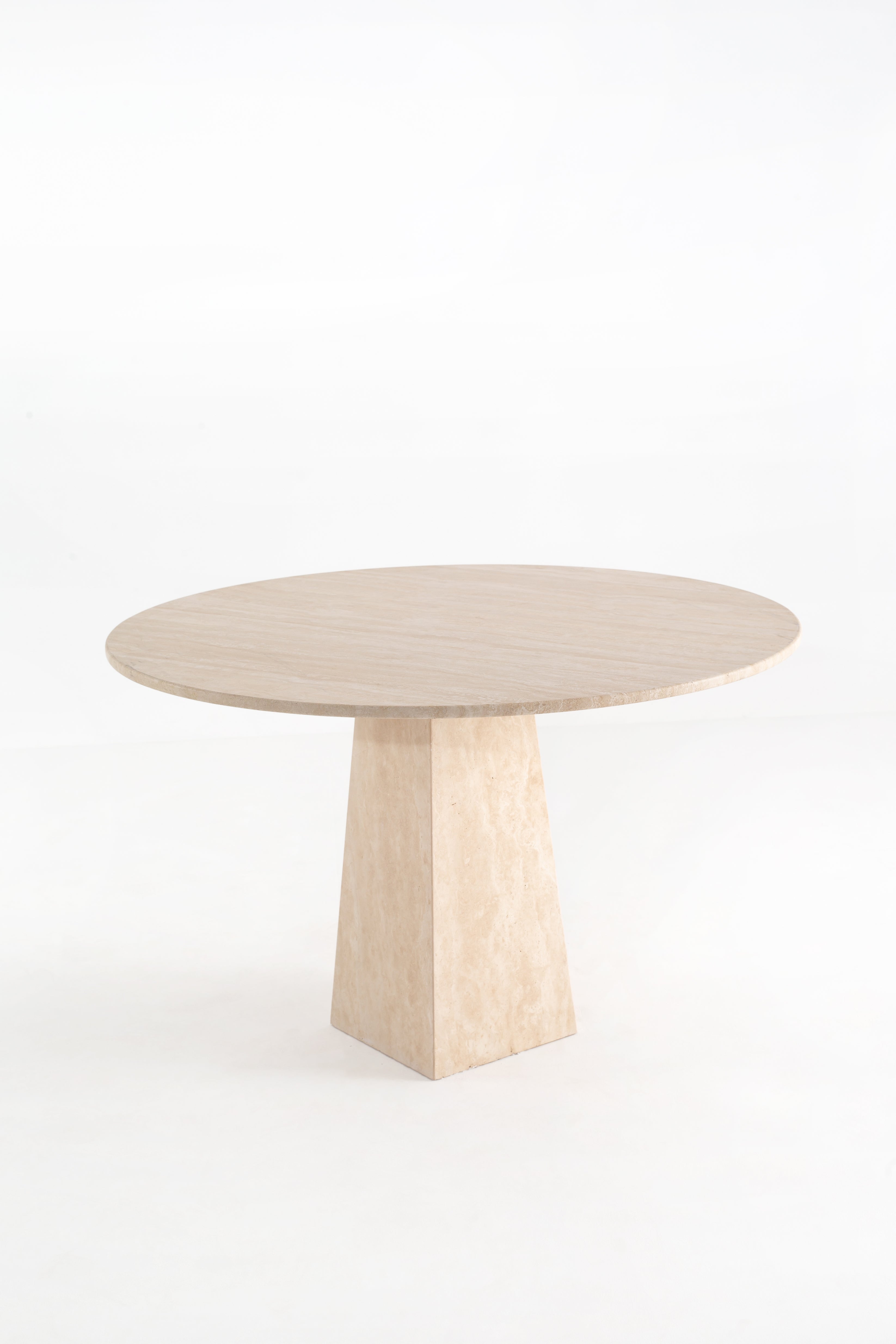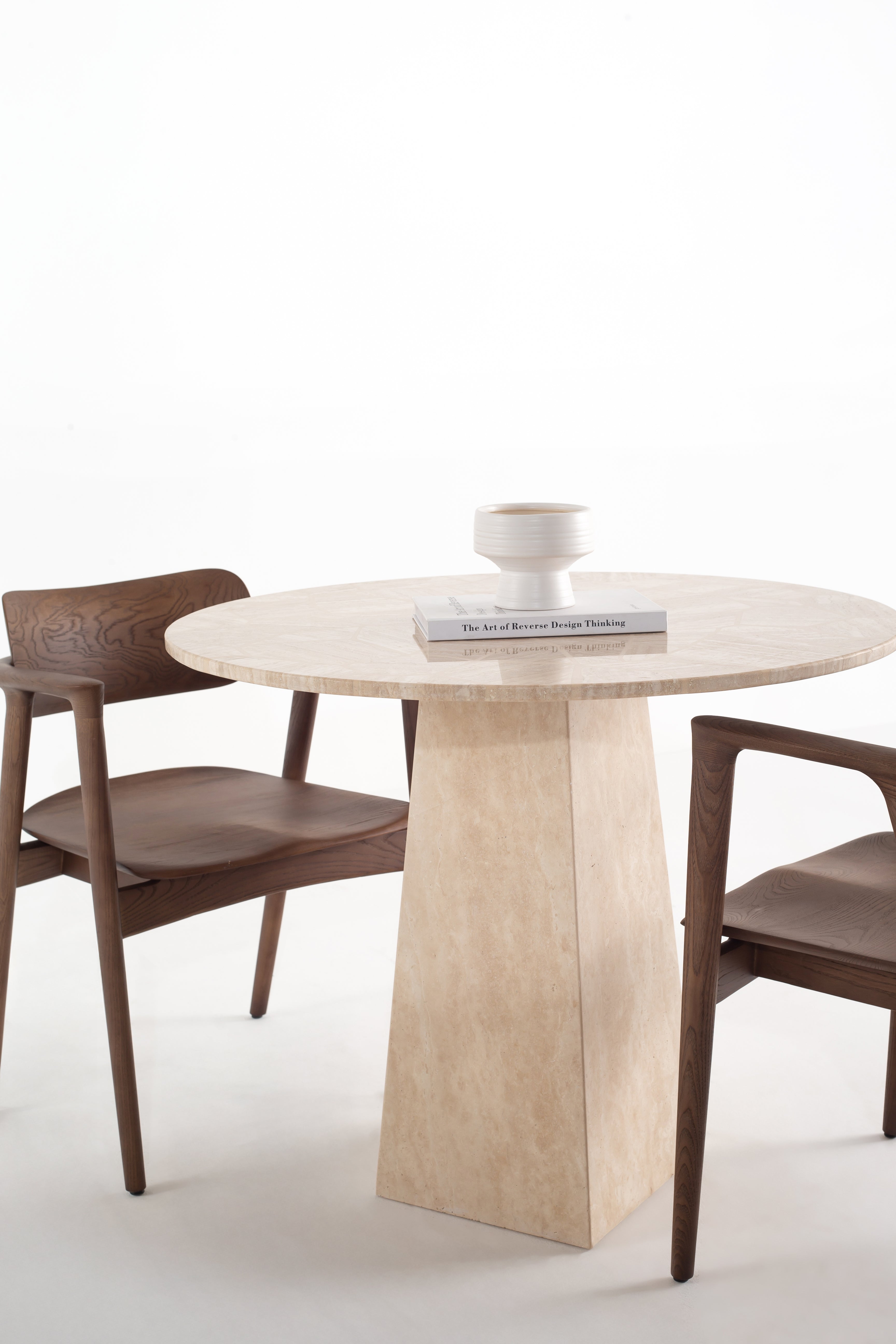 Picture yourself gathering around a masterpiece of modern design—a dining table that exudes elegance and timeless appeal. Crafted with a solid travertine base, its natural texture and earthy tones create a grounding presence, while the smooth, luxurious marble top adds a striking contrast, enhancing the visual depth of your space. The refined silhouette, with its clean lines and organic edges, effortlessly complements contemporary, minimalist, and classic interiors alike. Whether hosting a lavish dinner or enjoying everyday meals, this statement piece transforms your dining experience, making every moment feel like a sophisticated occasion